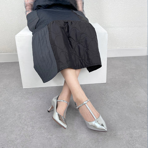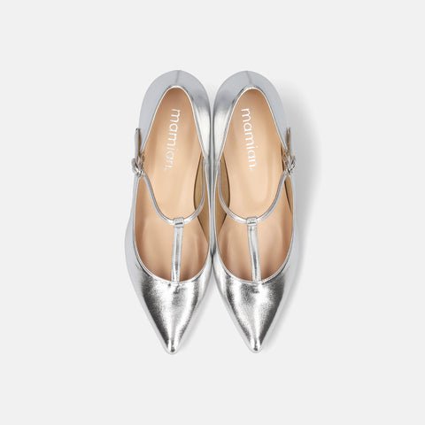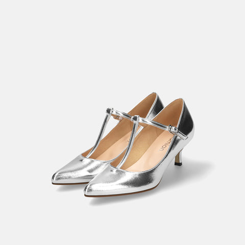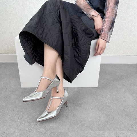 30%OFF:2025SS:Tストラップ パンプス 5cmヒール(m55201)シルバー