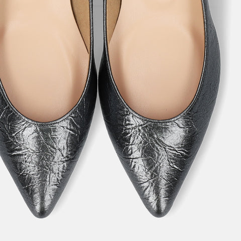 40%OFF:甲ストラップ付き Vカットフラットシューズ(m18013)クラックシルバー