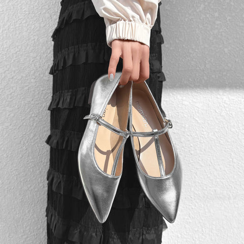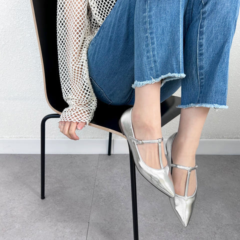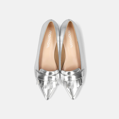 ラストワン30%OFF:2025SS:ドットチュール バレエシューズ(m17037)シルバーTU