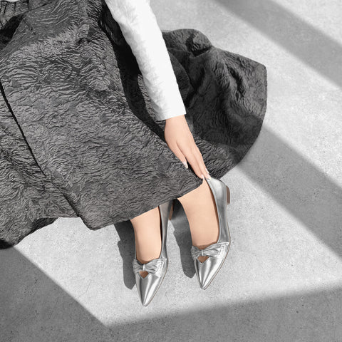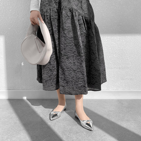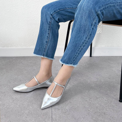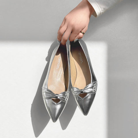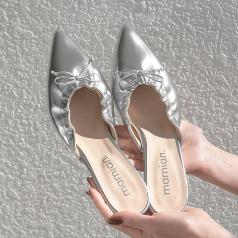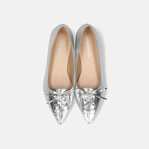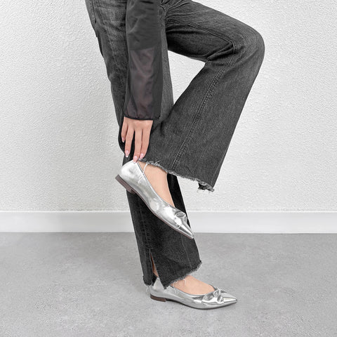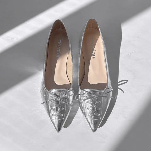 ラストワン50%OFF:2025SS:リボンフラットシューズ(m17052)シルバー