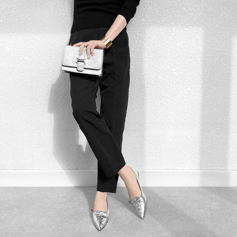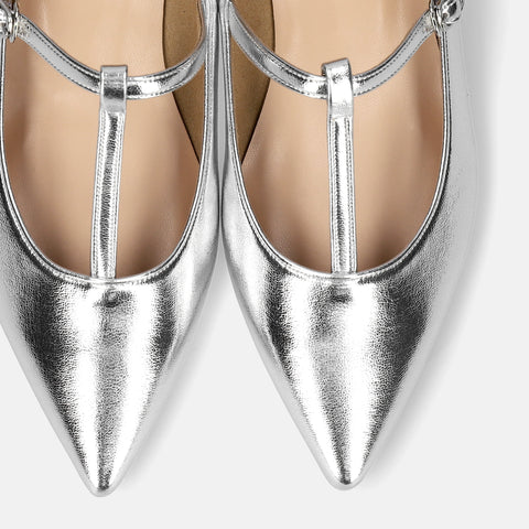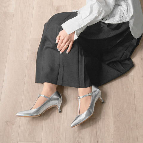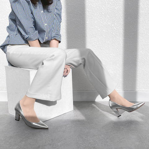 15%OFF:2025SS:iCoN COLORS:ポインテッドトゥ スムース パンプス(C76533)シルバー