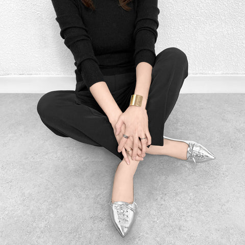 2025AWBI:ポインテッドトゥ レースアップ スニーカー(m1001)シルバーグリッター/C