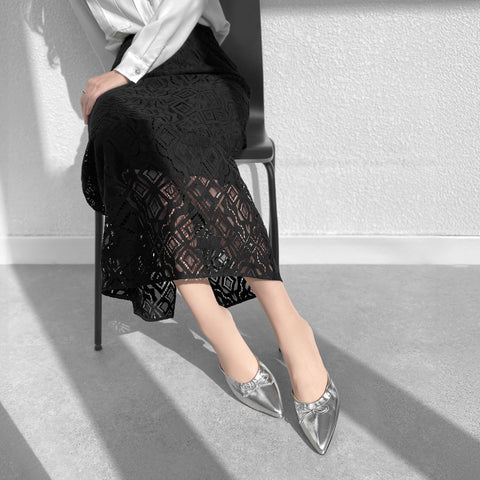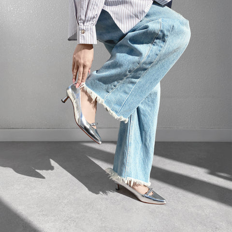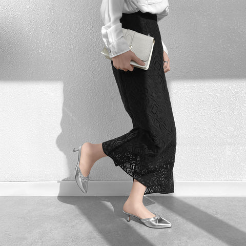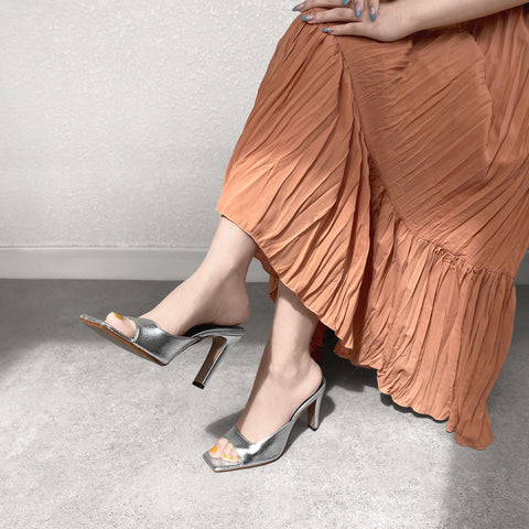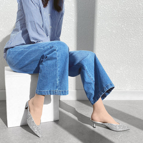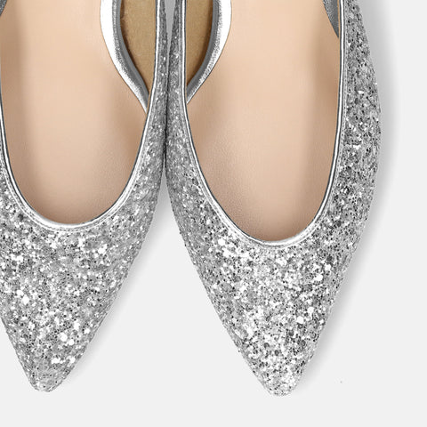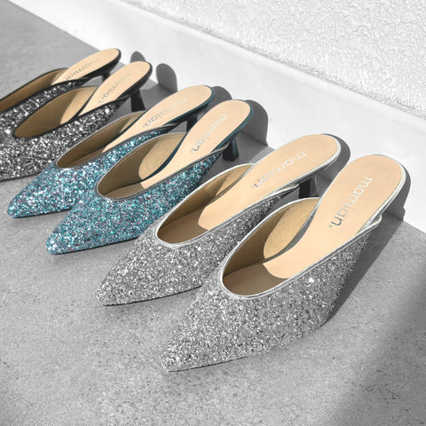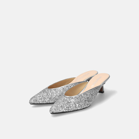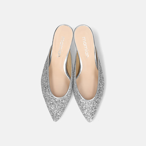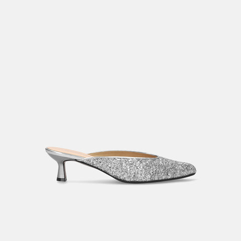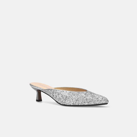 2025SS:グリッター ミュールパンプス(m45015)シルバーグリッター