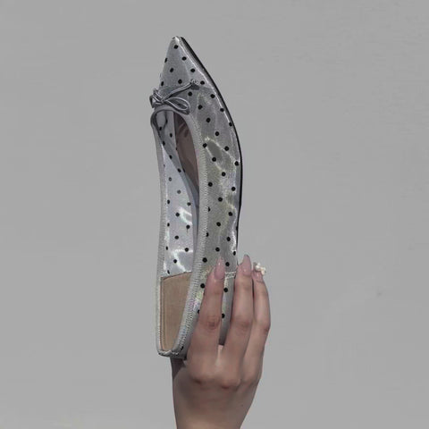 ラストワン30%OFF:2025SS:ドットチュール バレエシューズ(m17037)シルバーTU