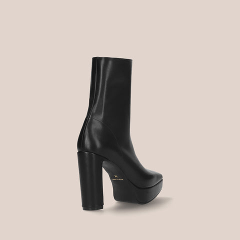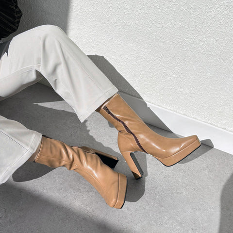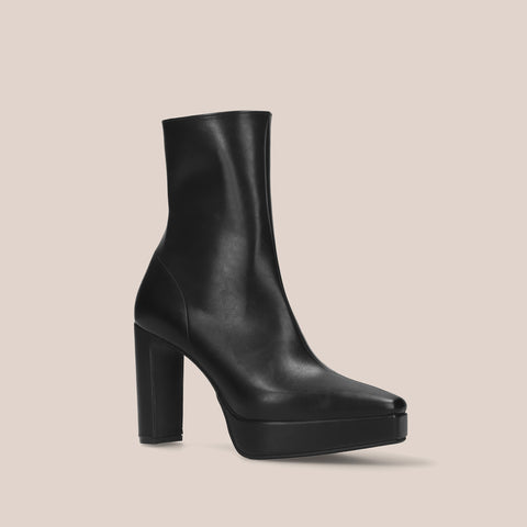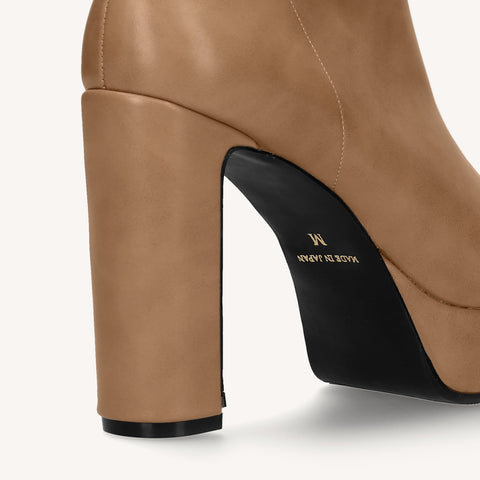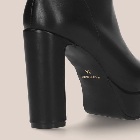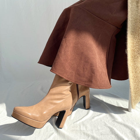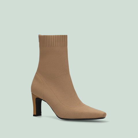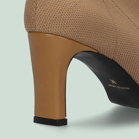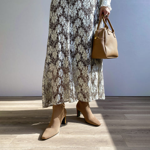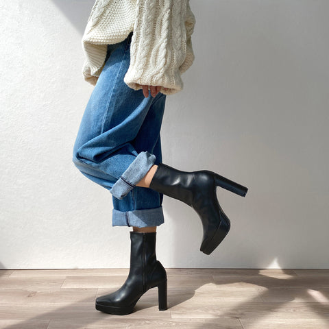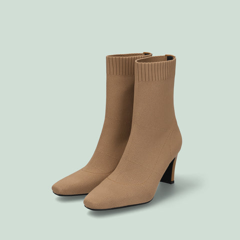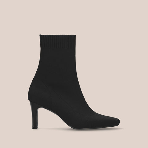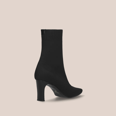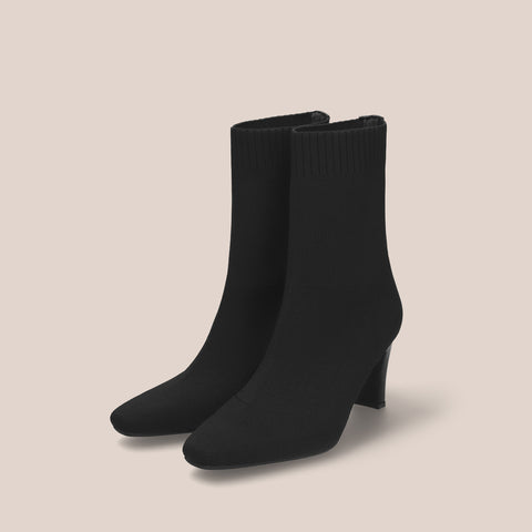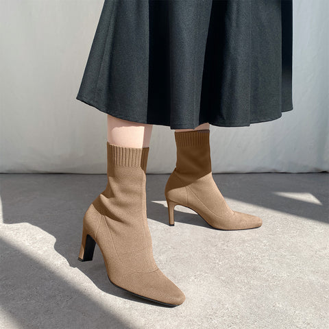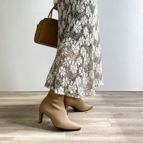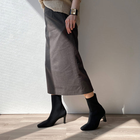 足にきれいにフィットする、ストレッチニットのソックスブーツが登場。安定感のあるプレート型太ヒールで、7.5cmヒールながら安定感を確保した嬉しい一足。