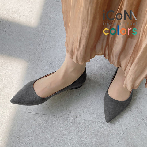 ラストワン50%OFF:iCoN COLORS:ポインテッドトゥ スエード フラットシューズ(C20142)チャコールS