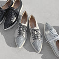 グリッターのトゥがスタイリッシュなレースアップのスニーカー。普段履きに最適な一足です。