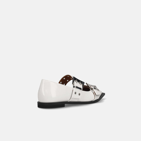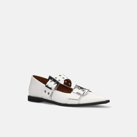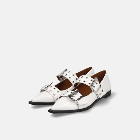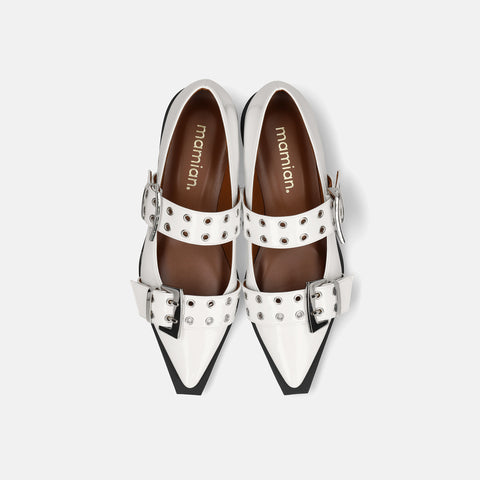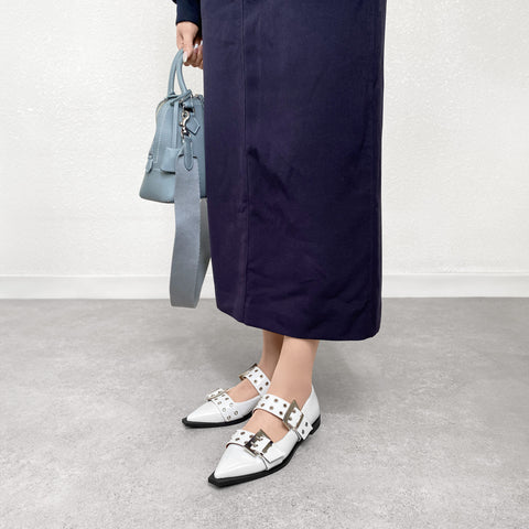 ラストワン30%OFF:ダブルストラップ フラットシューズ(m17045)ホワイトE