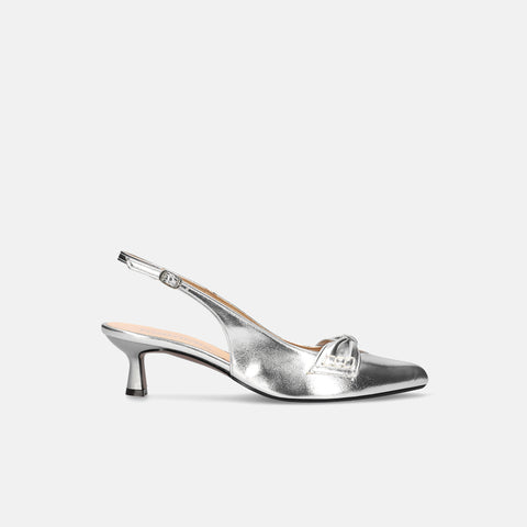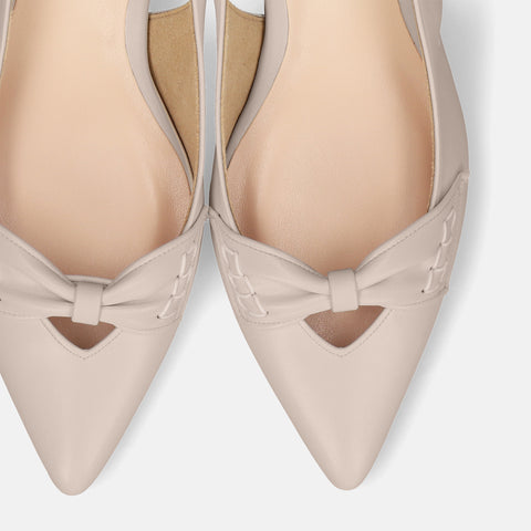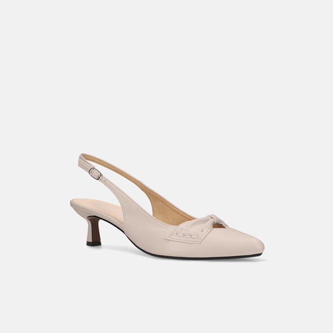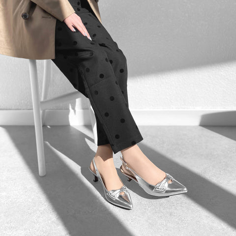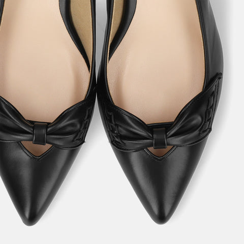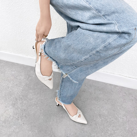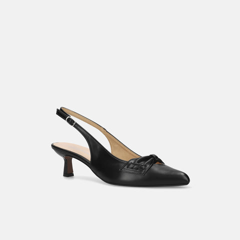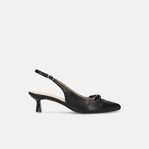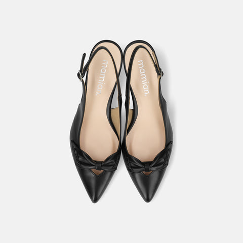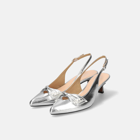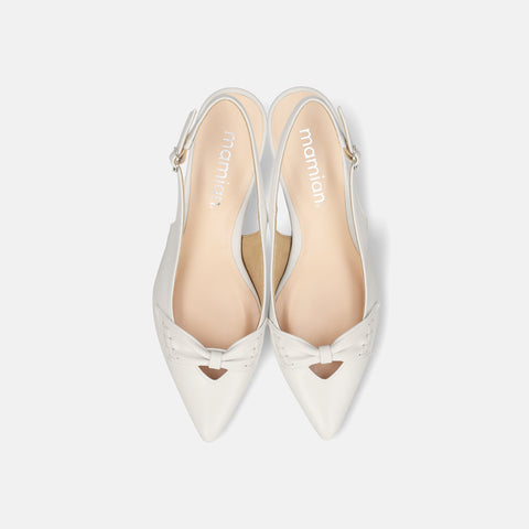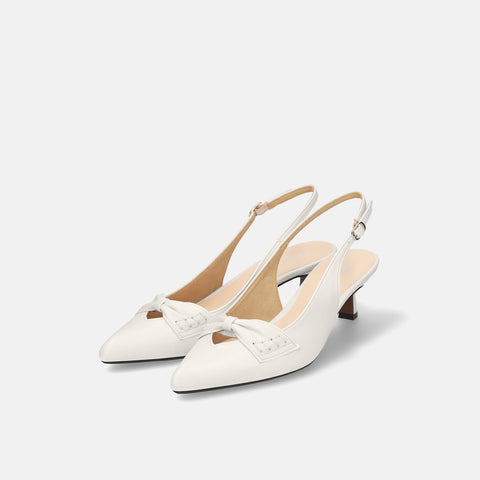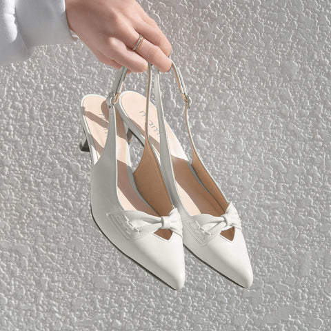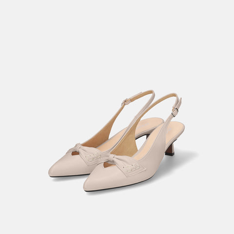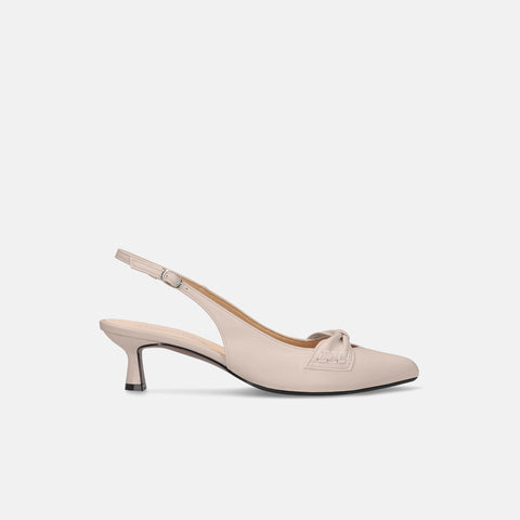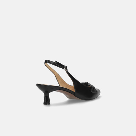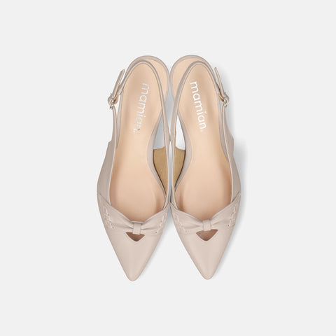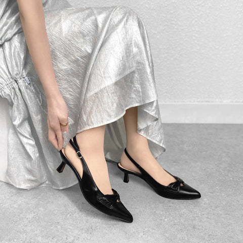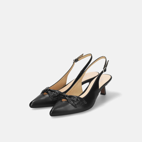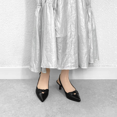 甲部分にリボンデザインが施されたバックストラップパンプス。