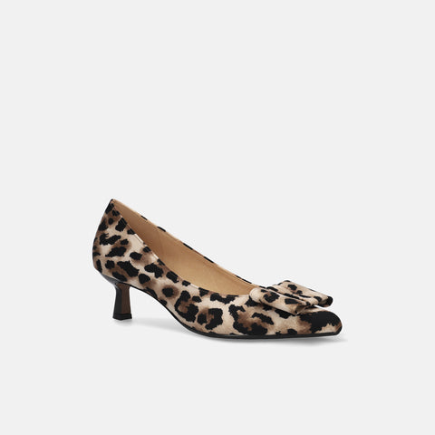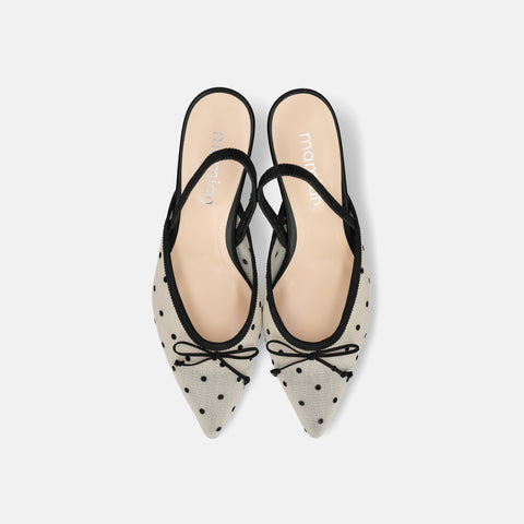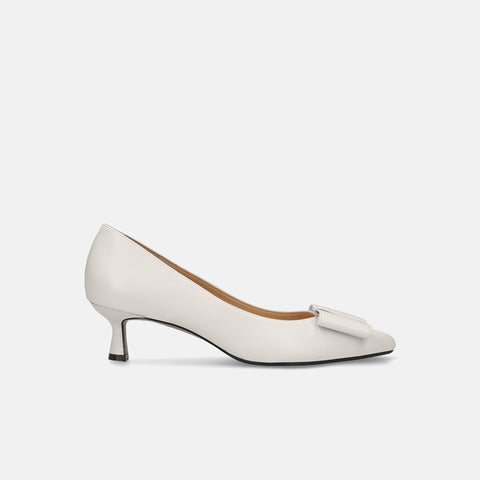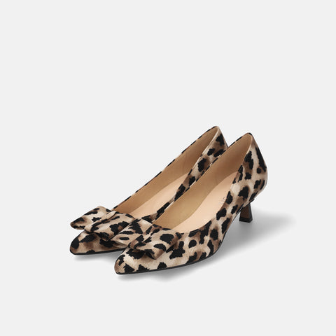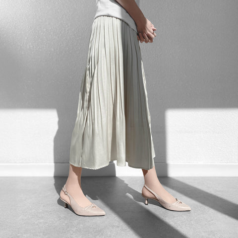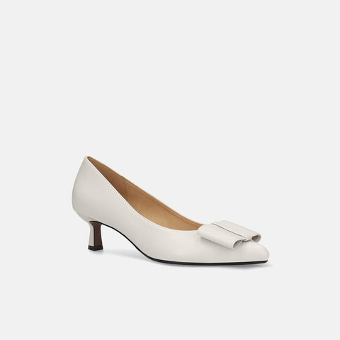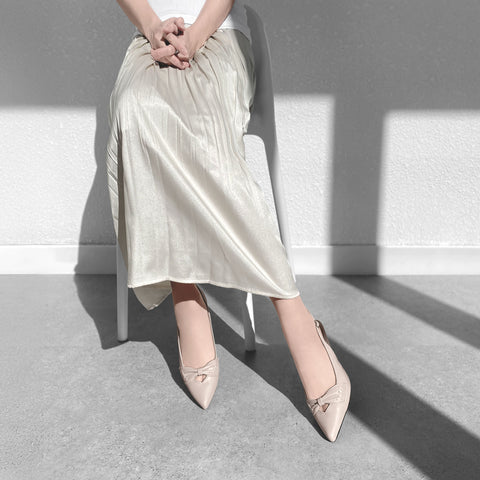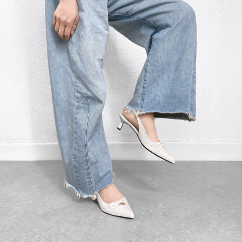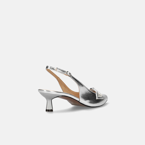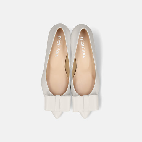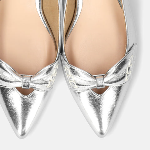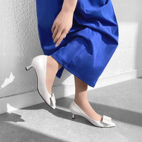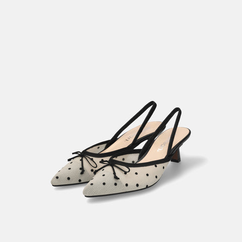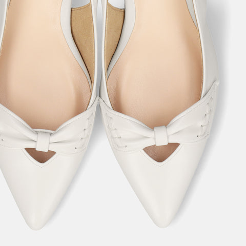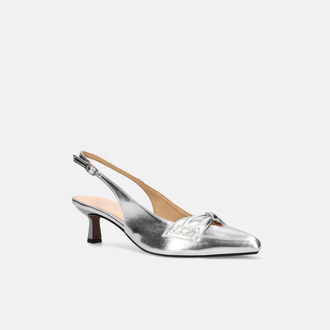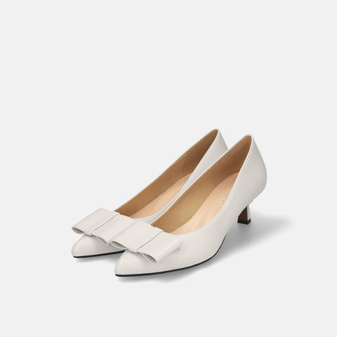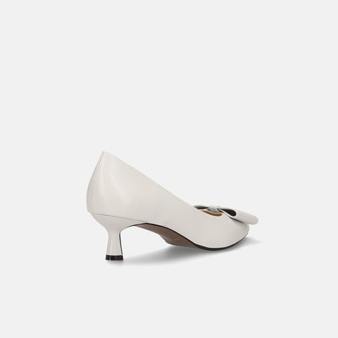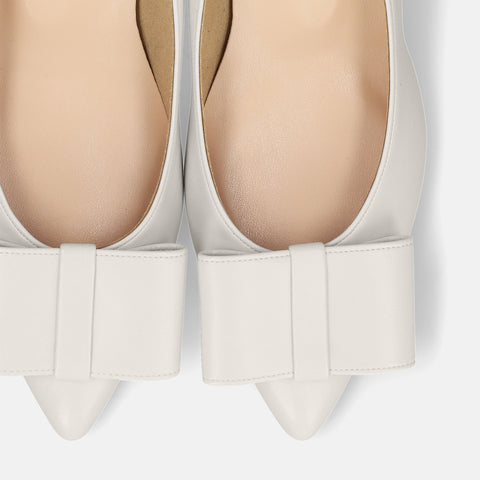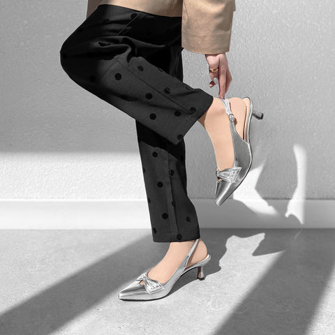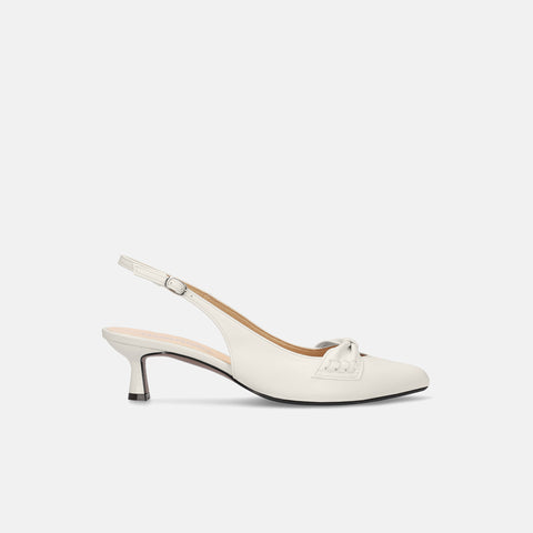 甲部分にリボンデザインが施されたバックストラップパンプス。
