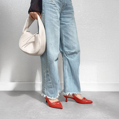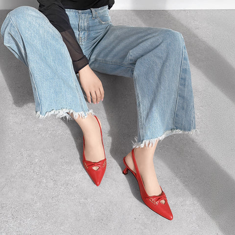 ラストワン2025SS:バックストラップ パンプス(m45020)レッド