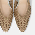 靴全面がメッシュで作られた、抜け感のあるVカットのパンプス。
