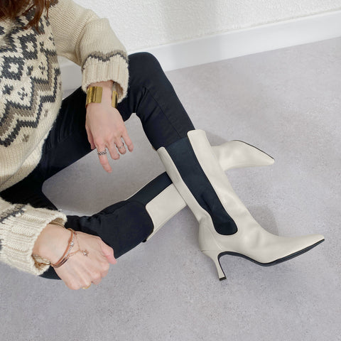 50%OFF:サイドゴア ミドルブーツ(m72009)アイボリー