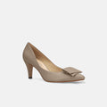 予約:2026SS:リボン付き ポインテッドトゥパンプス(m72027)グレージュ